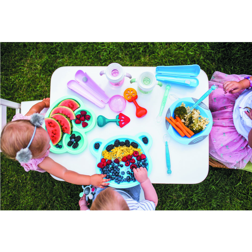 Silikonska grickalica pomaže bebi kada joj rastu prvi mliječni zubi. Dizajna prilagođenog malenim bebinim ustima i sa posebnim valovitim dijelovima koji masiraju bebine desni, ova grickalica je nezamjenjivo pomagalo za vašu bebu. Grickalica je izrađena od materijala koji osiguravaju dugotrajnost i sigurnost, a pritom ne sadržavaju bisfenol a (BPA).
