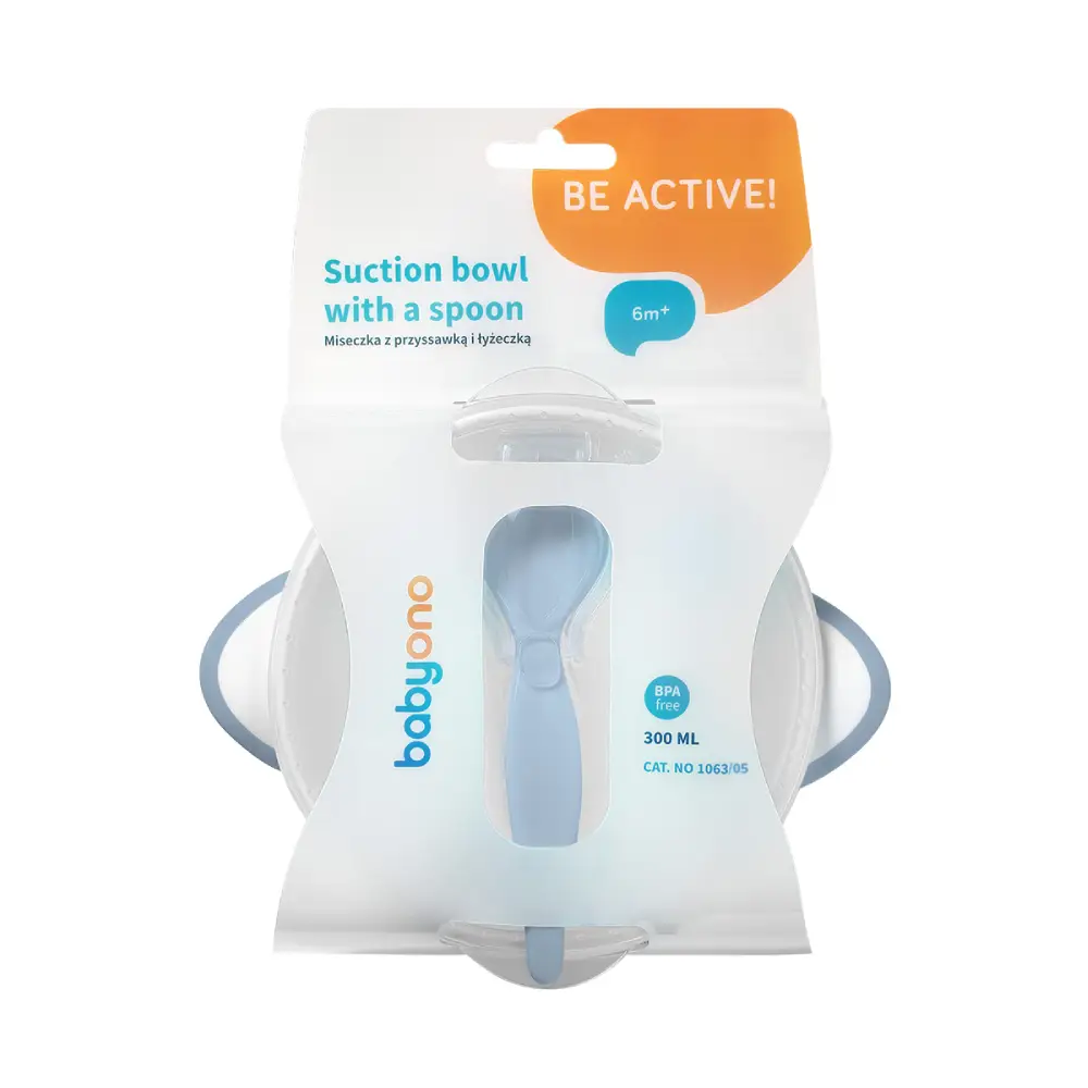 BabyOno posuda s prianjajućim dnom je posebno korisna tokom šetnje s bebom ili kada putujete. Mekani, čvrsto zatvoreni poklopac je također opremljen sa sistemom koji pomaže kod spremanja, tako da se žlica neće zaprljati ili izgubiti. Gumeno prianjajuće dno spriječava klizanje posude po stolu. Proizvod je izrađen od sigurnih materijala, 100% bez BPA (Bisfenola A). Može se koristiti u mikrovalnoj ili u perilici suđa.