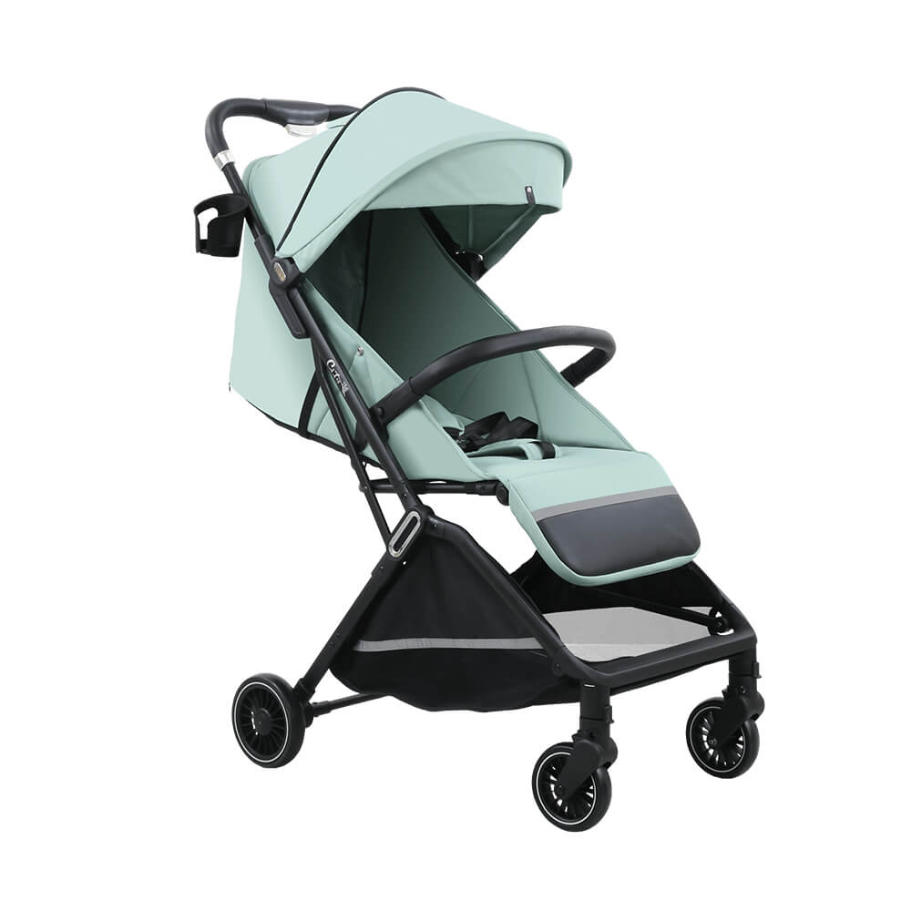 Kolica su opremljena amortiziranim kotačima, prilagođenima svim terenima. Prednji kotači se okreću za 360°, omogućujući laku vožnju po gradskim ulicama i neravnim stazama. Sigurnosni pojasevi u pet točaka pružaju dodatnu sigurnost. Ergonomska ručka omogućuje ugodno guranje bez napora.
