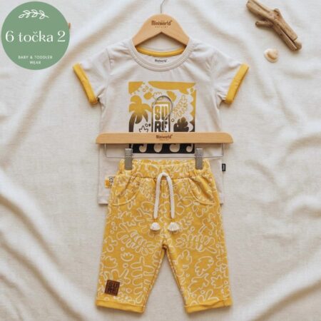 Pripremite svog dječaka za nezaboravno ljeto uz naš “Surf Style” komplet! Ova kombinacija spaja minimalistički stil i razigran surferski dizajn, stvarajući savršen outfit za plažu, park ili opuštene šetnje gradom.