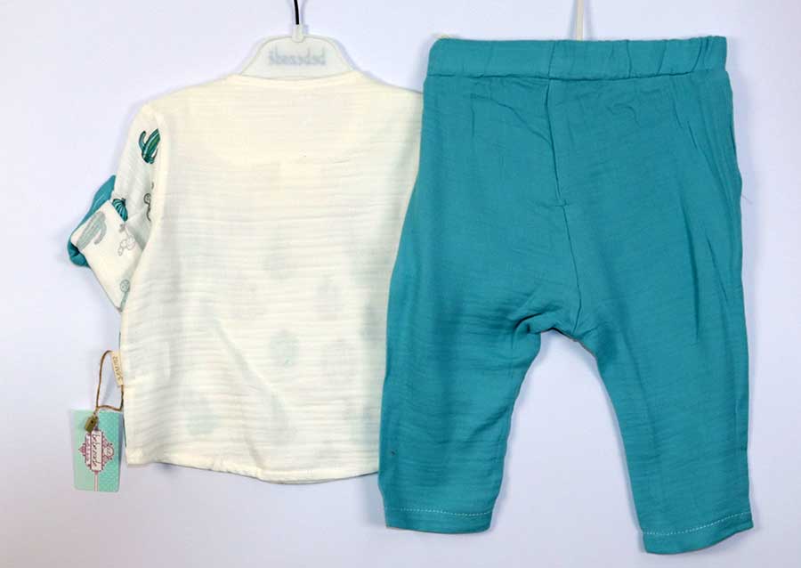 Komplet se sastoji od hlača, polo majice pique materijala i tregera. Ovaj komplet je od 100% turskog pamuka.
