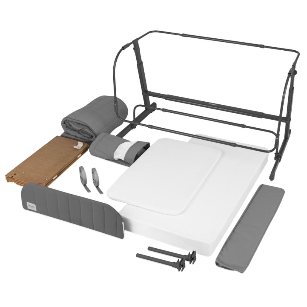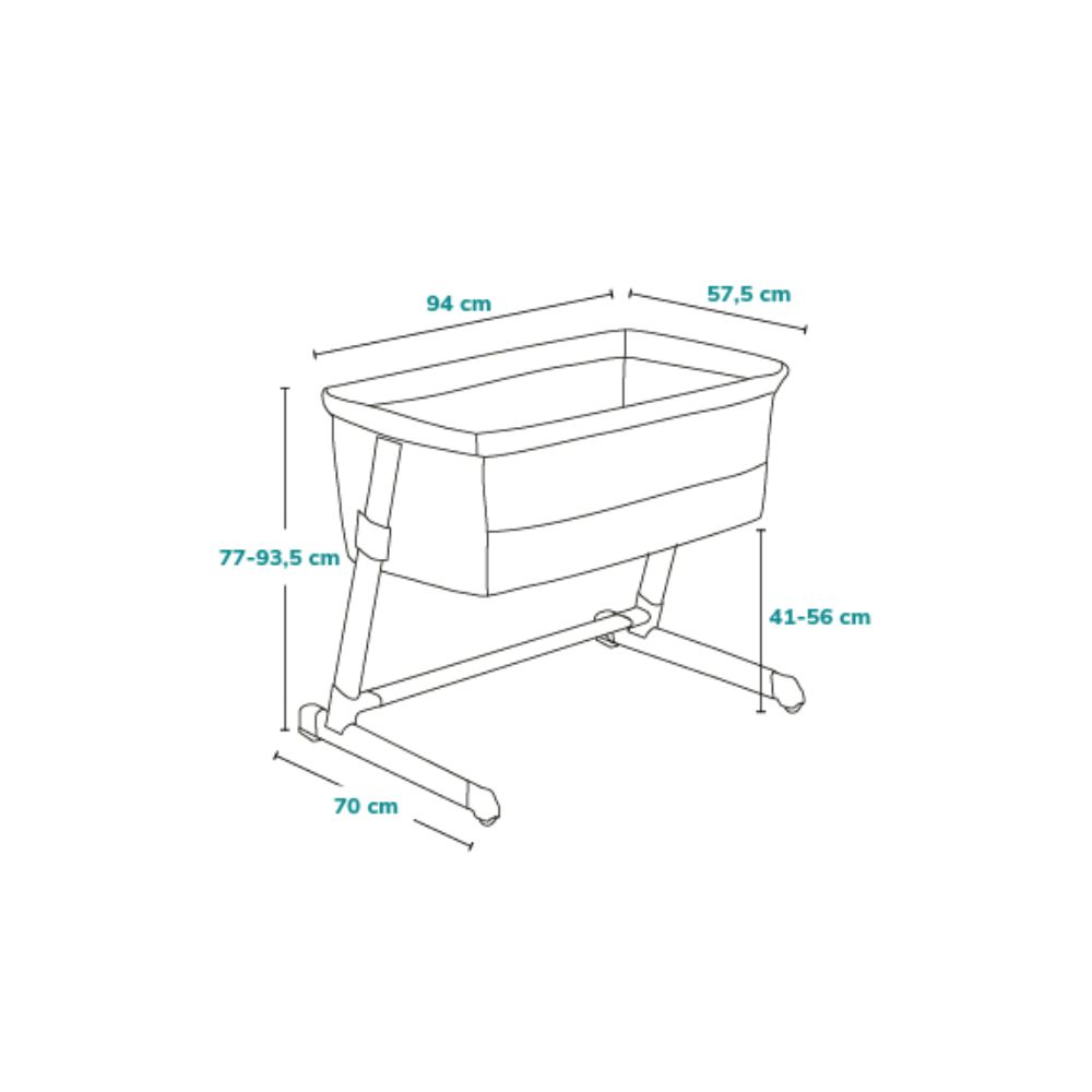 Kada želite dijeliti odmor s bebom, jednostavno otpustite bočnu stijenku i pomoću priloženih remena pričvrstite krevetić uz roditeljski krevet. Duljina nogica se može podesiti kako bi se najbolje uskladila s visinom kreveta roditelja.