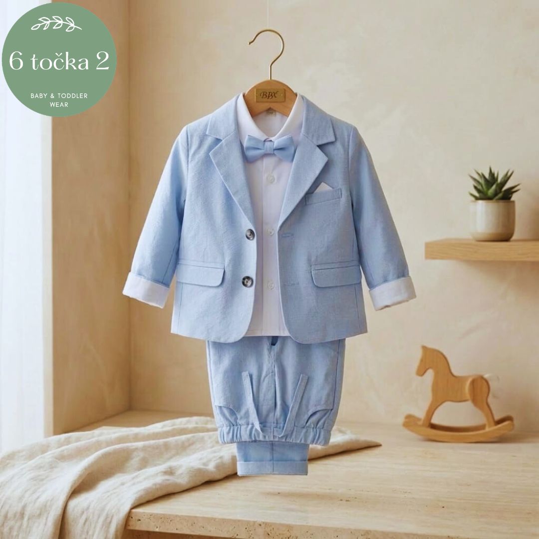 Predstavljamo svečano odijelo za krštenje renomiranog turskog branda Concept, dizajnirano s posebnom pažnjom kako bi vašem mališanu pružilo udobnost, stil i eleganciju na najposebniji dan. Set se sastoji od košulje, profinjenog sakoa i hlačica s praktičnom regulacijom struka, što jamči savršeno pristajanje i maksimalnu udobnost.