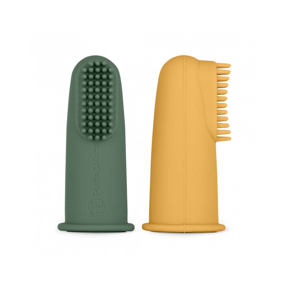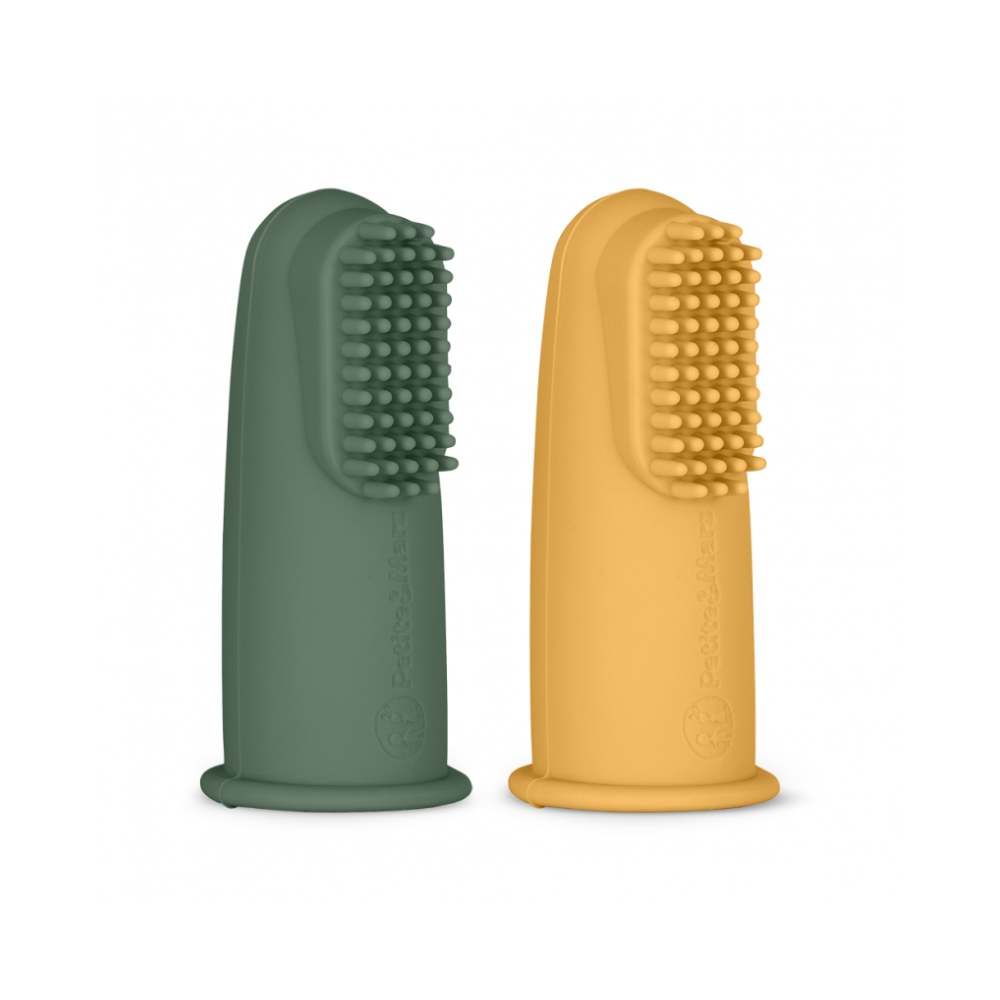 PETITE&MARS Silikonska četkica za desni na prst 2 kom 0 m+, Ochre&Green