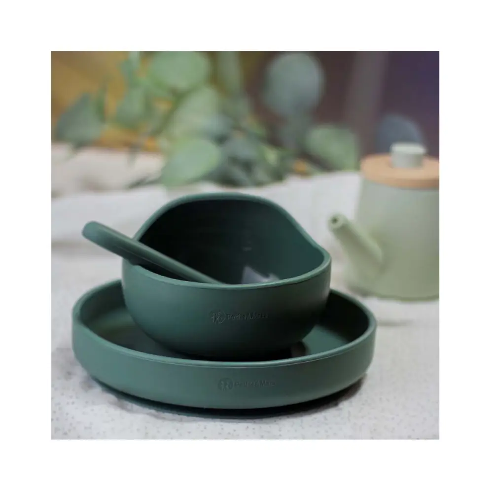 PETITE&MARS Silikonska zdjelica s vakuumom 360 ml Take&Match 6 m+, Misty Green