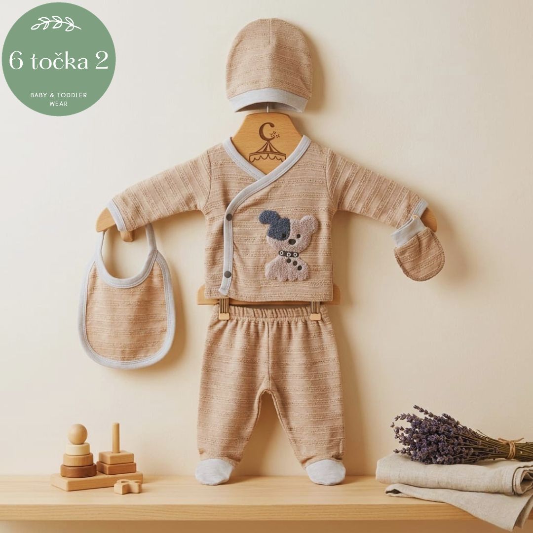 Dolazak nove bebe poseban je trenutak koji zaslužuje najmekšu dobrodošlicu. Naš 5-dijelni set za izlazak iz bolnice pažljivo je dizajniran kako bi vašem novorođenčetu pružio maksimalnu udobnost, toplinu i sigurnost od prvog dana.