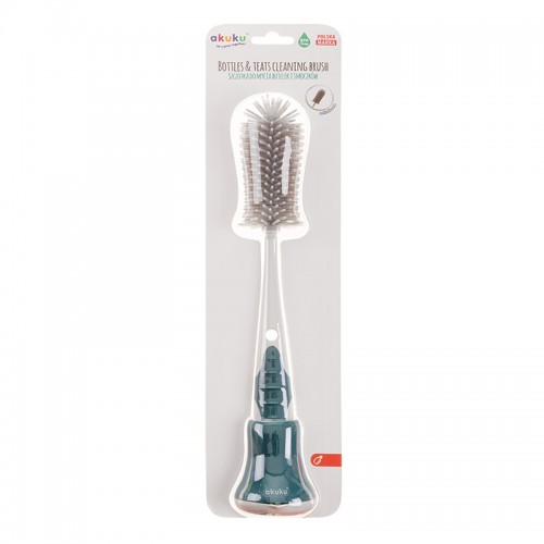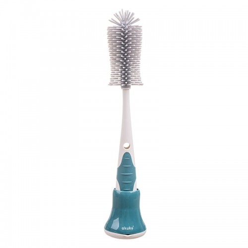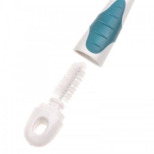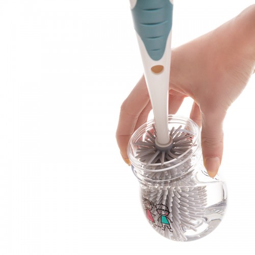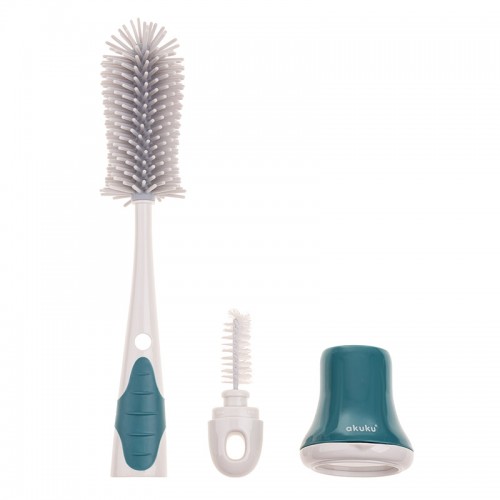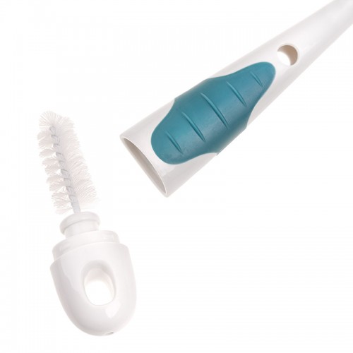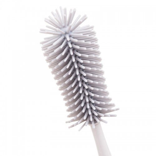 Izdržljiva četka izrađena je od mekanog silikona za čišćenje otpornog na ogrebotine. Manja, odvojiva četkica za čišćenje duda pohranjena je unutar ručke, održavajući je čistom i bez prljavštine kada se ne koristi. Higijenski, uspravni stalak za odlaganje ima posudu za ocjeđivanje tako da će nakon upotrebe sav višak vode otjecati u posudu spremnu za izlijevanje. Dugačka ergonomska ručka odlična je za čišćenje teško dostupnih mjesta.
