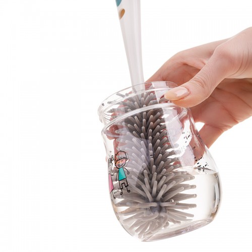 Čišćenje dječjih bočica, čašica i duda ne mora biti težak posao s ovom elegantnom 2 u 1 silikonskom četkom sa postoljem.